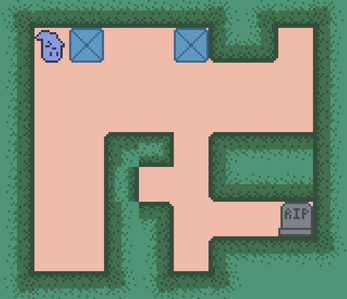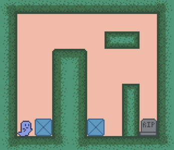 Your goal is to get to the tombstone at the end of each map. The only tools at your disposal are moving side to side, pushing boxes, and controlling the force of gravity!